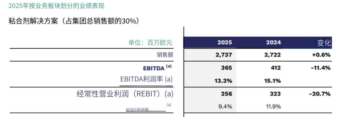 先进材料(占总销售额 38%):销售额 34.41 亿欧元,恒定汇率下基本持平,高性能聚合物业务实现 2% 的有机增长。该板块受益于电池、3D 打印、医疗健康等高增长赛道 16% 的同比销售增幅,以及亚洲市场的强劲需求,EBITDA 达 6.16 亿欧元,利润率保持 17.9% 的高位。年内,集团在美国的 DMDS、1233zd 新产能及新加坡的 Rilsan® Clear 透明聚酰胺新装置均按计划顺利投产。